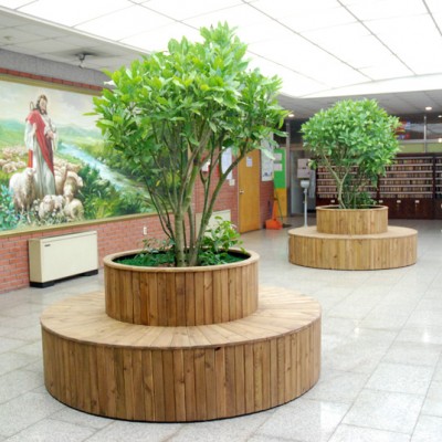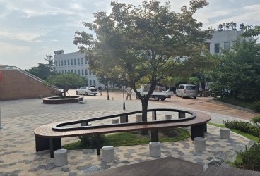 철제원형테이블 Φ1000*H750 1EA 철제원형벤치 Φ500*H430 4EA 분체도장으로 마감된 철제프레임에 하드우드목재 (30*6..