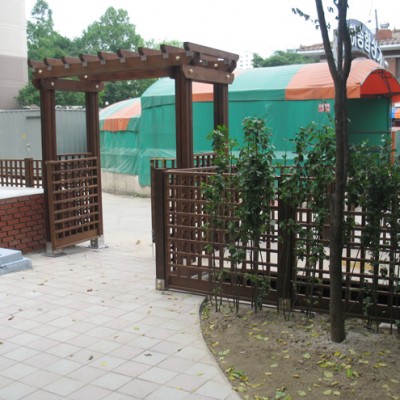 시흥에 설치된 복층렉산 목재파고라입니다. 2500*4000*H2700 방부목으로 제작된 목재파고라입니다. 오일스테인 마감된 목재로 ..