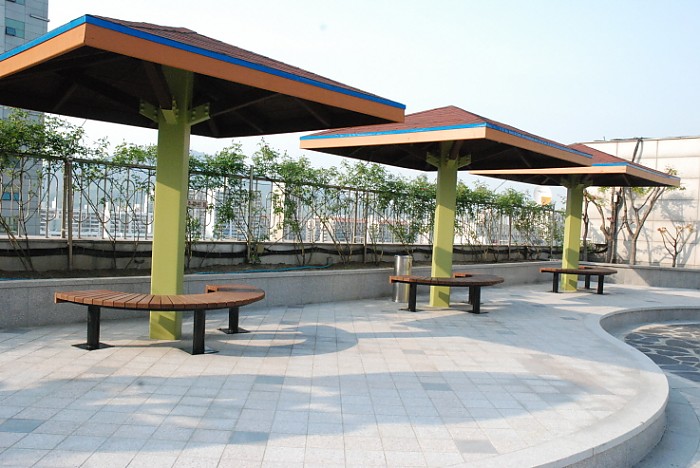 안양동에 위치한 빌딩 옥상에 설치된 파고라와 연식의자 입니다.