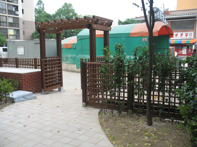 중계동에 설치된 아치형 파고라와 휀스입니다