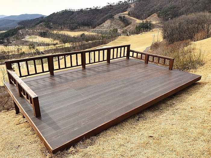 안성에 위치한 골프장내 합성복재 전망 데크 설치 사진입니다.