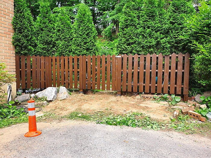 과천에 위치한 전원주택 울타리 문 공사와 베란다 하드우드 데크시공 사진입니다.