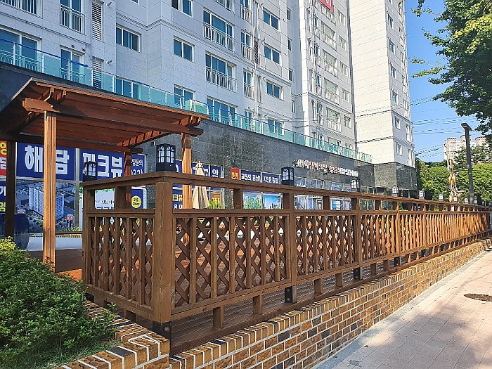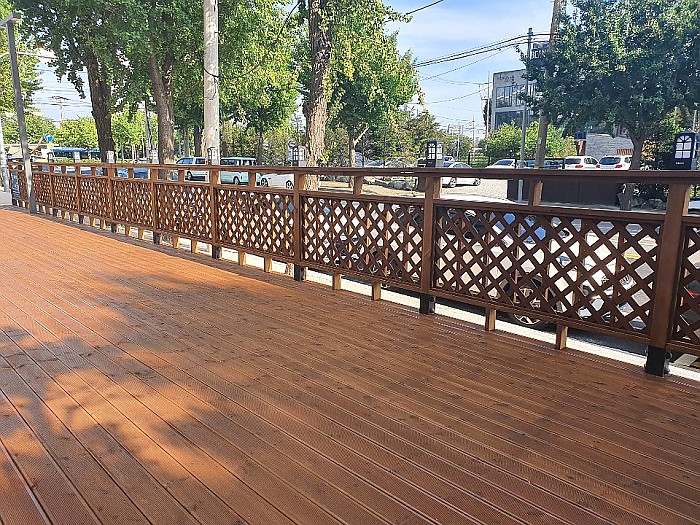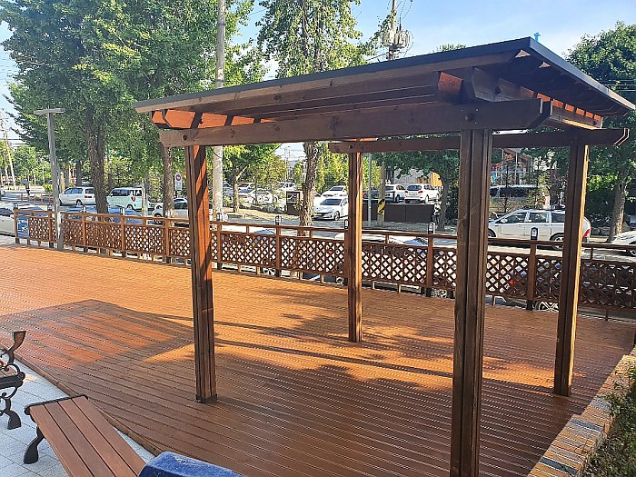 데크 난간 조명등 파고라 야외용테이블 등벤치 공사입니다.