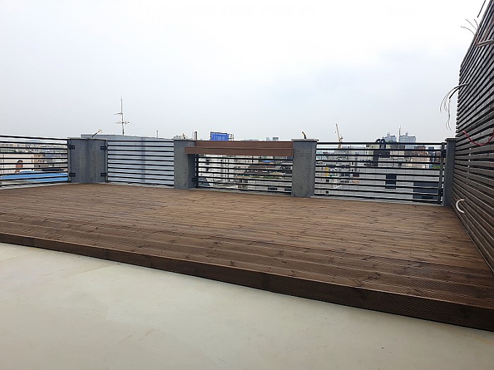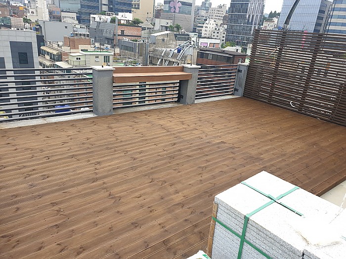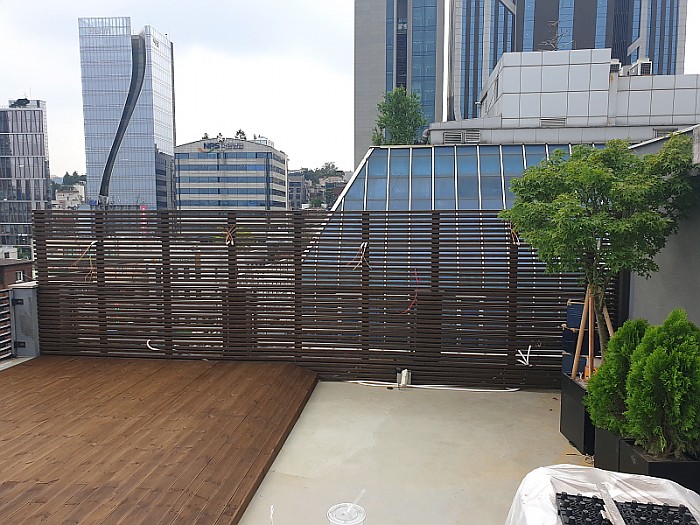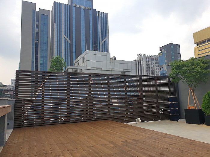 가로숲길 빌딩 옥상에 설치된 데크 및 휀스 플랜트 설치공사 입니다.