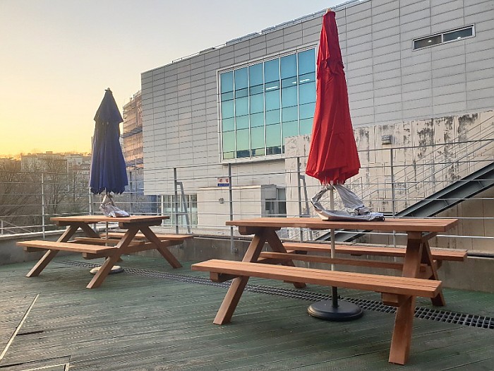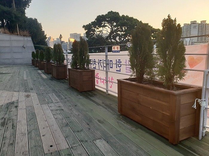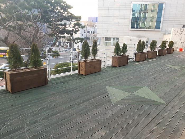 옥상조경-실외 대광중학교 플랜트 및 야외용 테이블, 분리수거함 제작 시공
