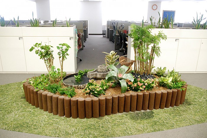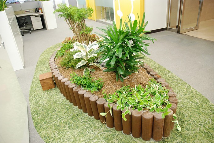 삼성카드 고객서비스 센타에 설치된 실내 원주목 플랜트박스와 식재입니다.(추가)