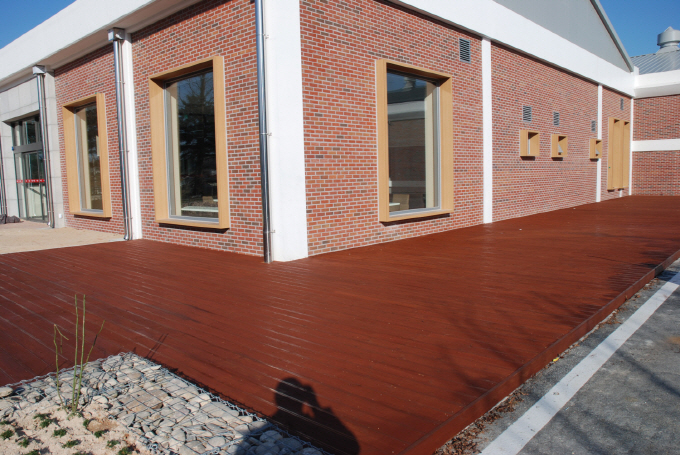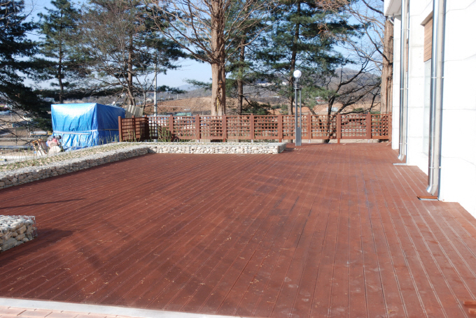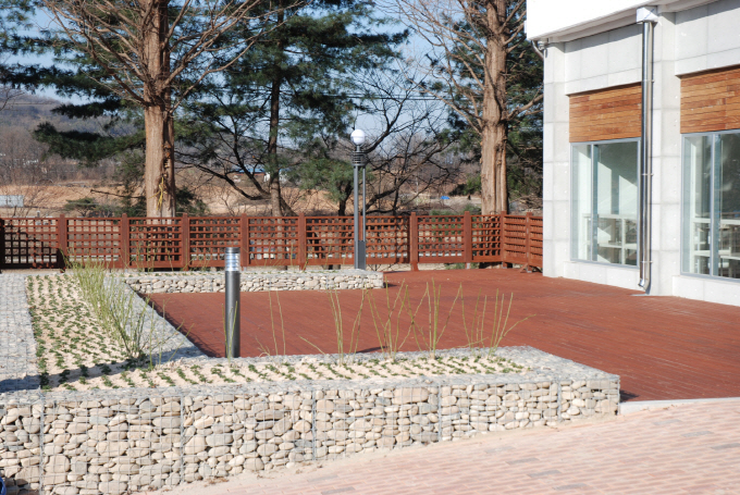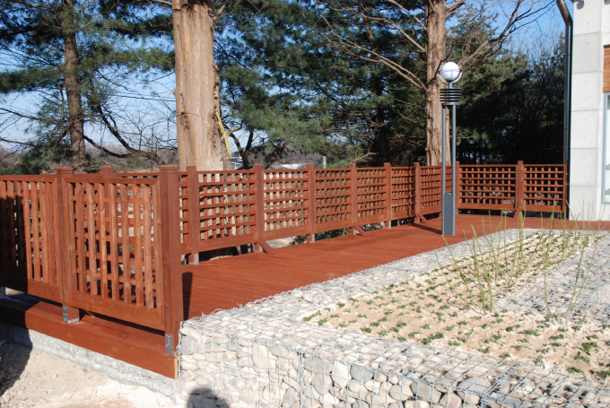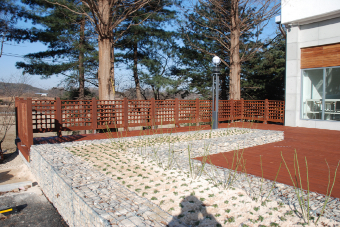 이천에 위치한 팜스코 현장 조경공사 - 식재공사 및 목재휀스, 데크시공