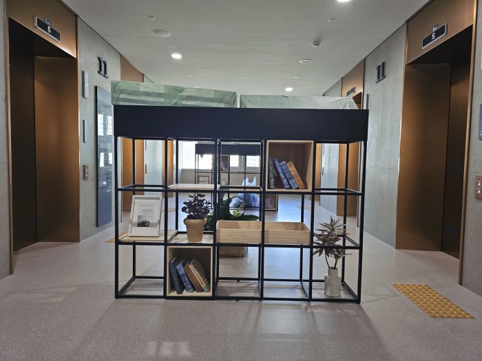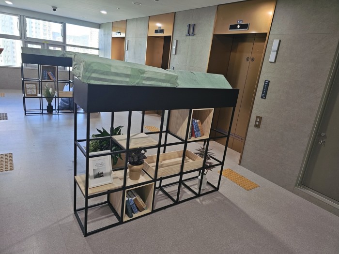 다양한 모양의 미송박스를 제작해 포인트를 주었습니다.