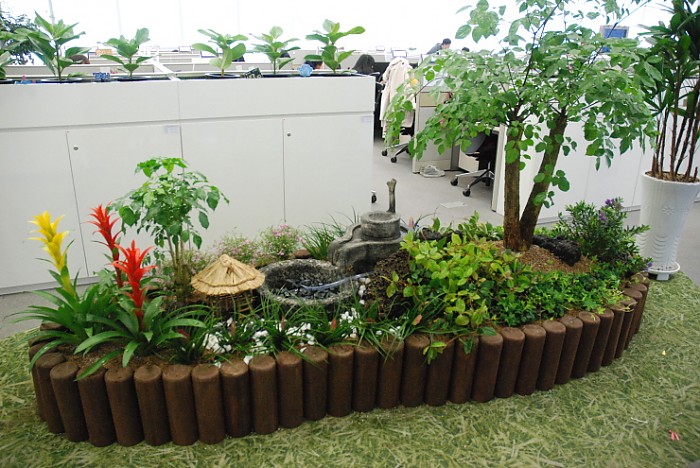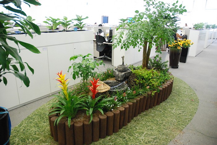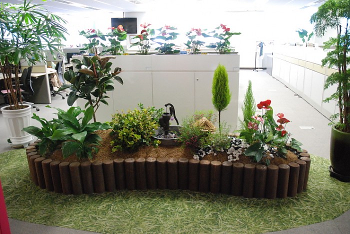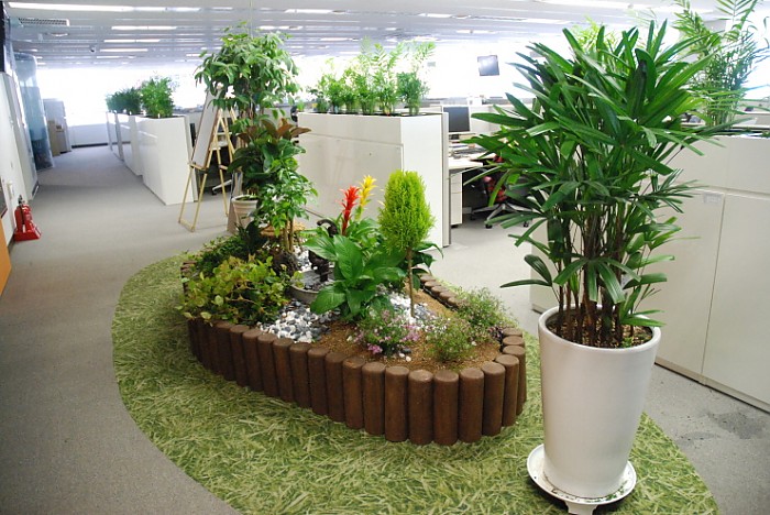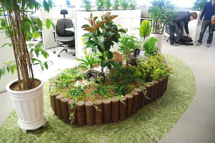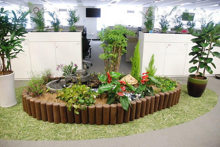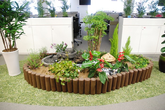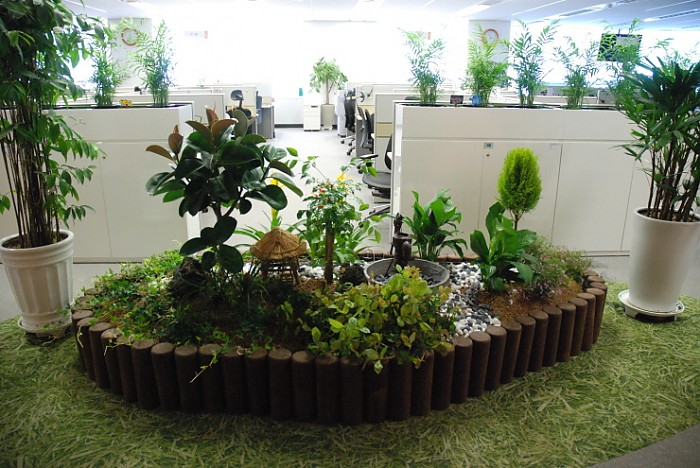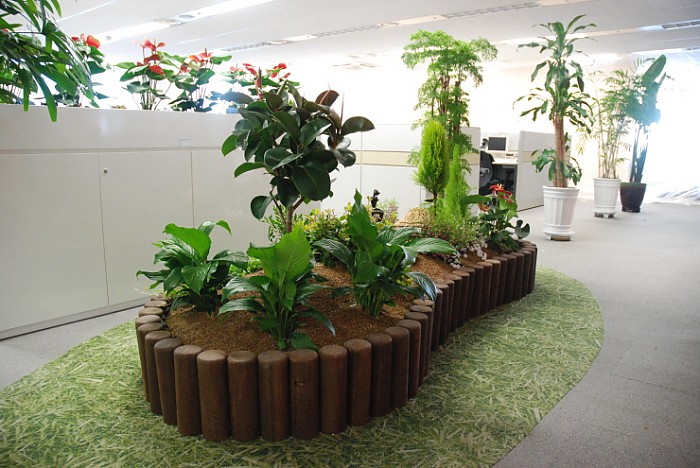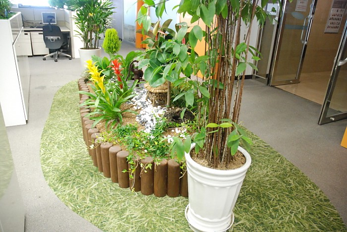 삼성카드 고객서비스 센타에 설치된 실내 원주목 플랜트박스와 식재입니다.