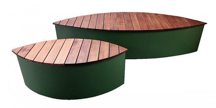 외부에 설치된 벤치는 철제로 제작된 벤치프레임 위에 하드우드 목재로 상부를 만들었습니다.
