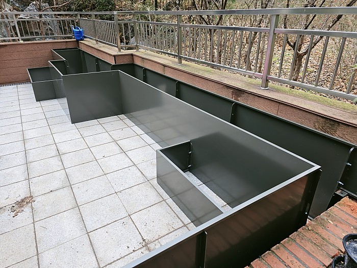 철제화단은 조립식 가벽으로 제작하여 조각마다 분체도장마감후 조립되기 때문에