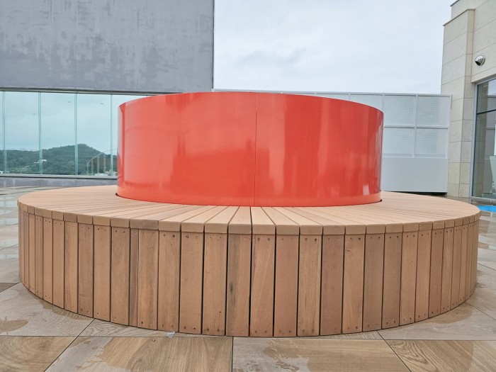 목재는 하드우드 목재로 제작되어 방부목재벤치보다 내구성이 높습니다.