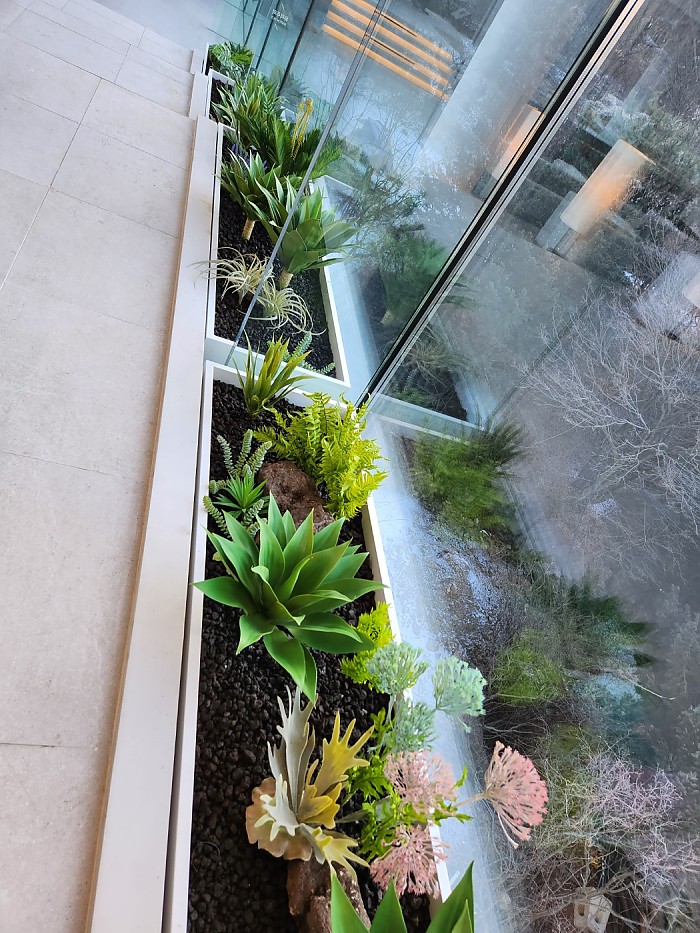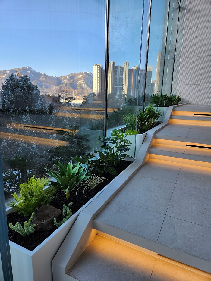 자동관수플랜트박스와 철제플랜트박스 실내조경사례입니다.
