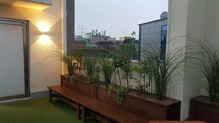 옥상조경-실외 방부목 벤치형 플랜트박스
