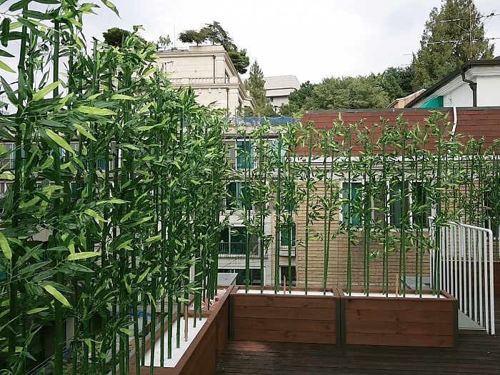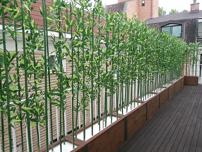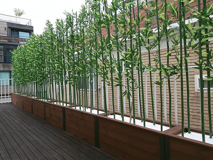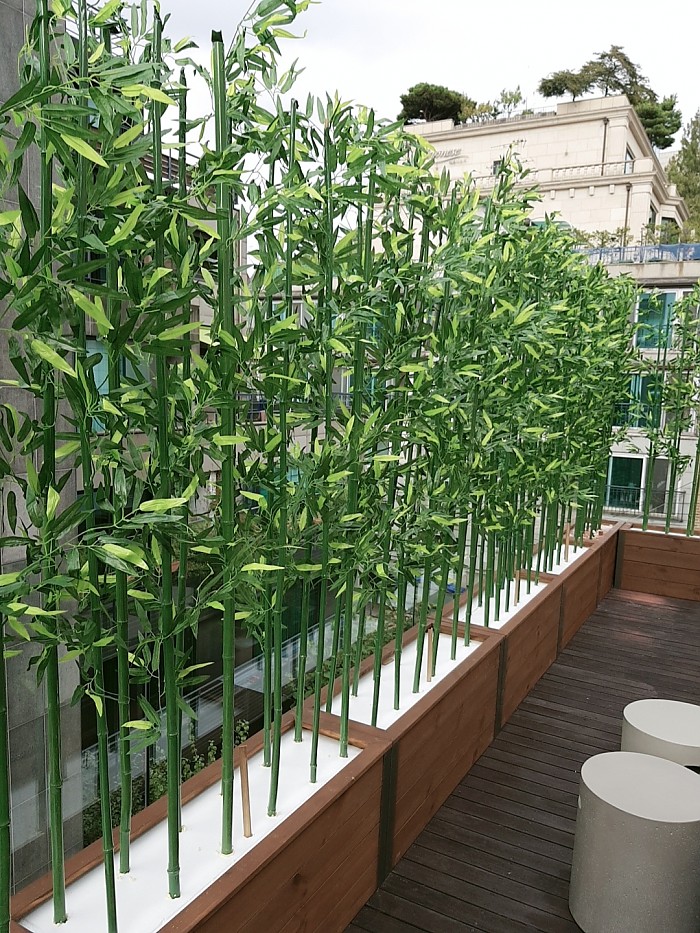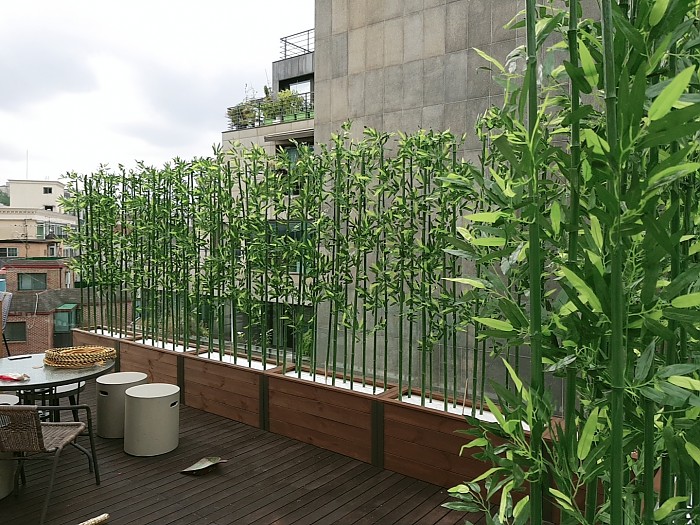옥상조경-실외 알루미늄코너 방부목 플랜트에 인조대나무 시공사례