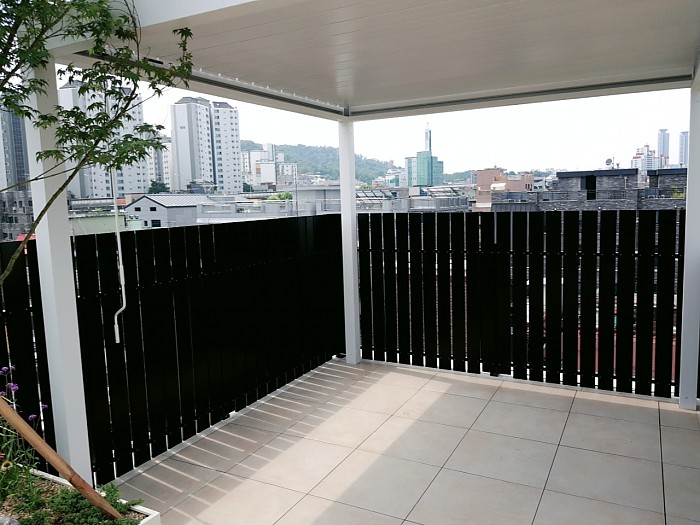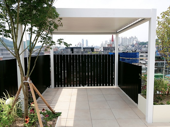 옥상조경-실외 데크, 합성목휀스, 철제플랜트를 이용한 옥상조경
