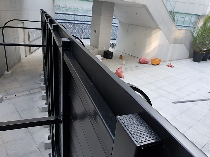 휀스가 바람에 흔들리지 않도록 철구조물을 앞뒤 고정하여 튼튼하게 제작하였습니다.