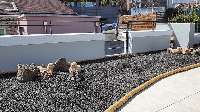 카페 타라스에 화산석 마감재로 조경한 사진입니다.