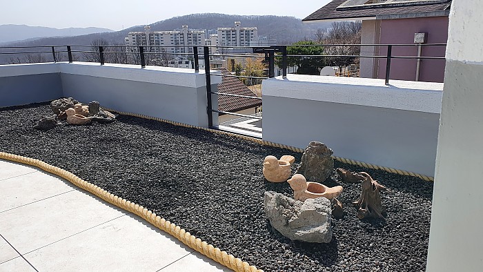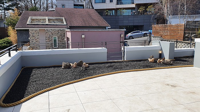 옥상조경-실외 테라스 화산석 조경