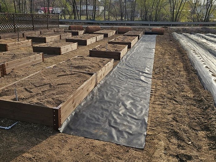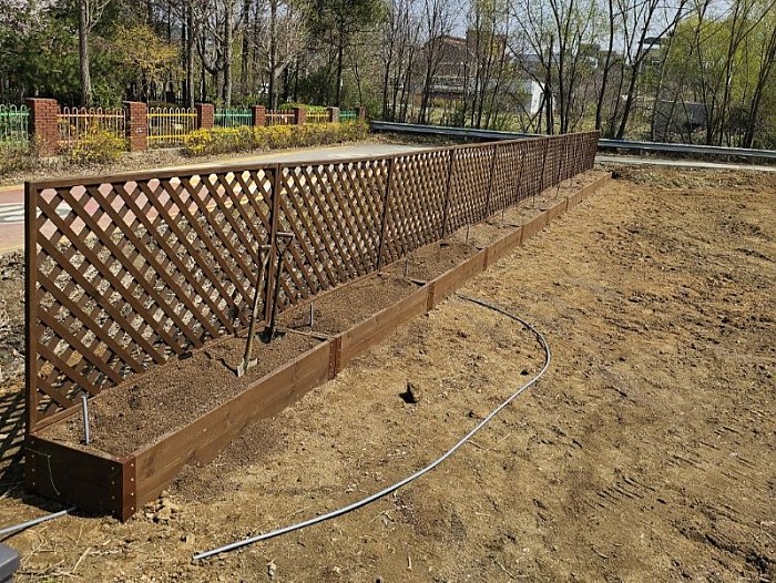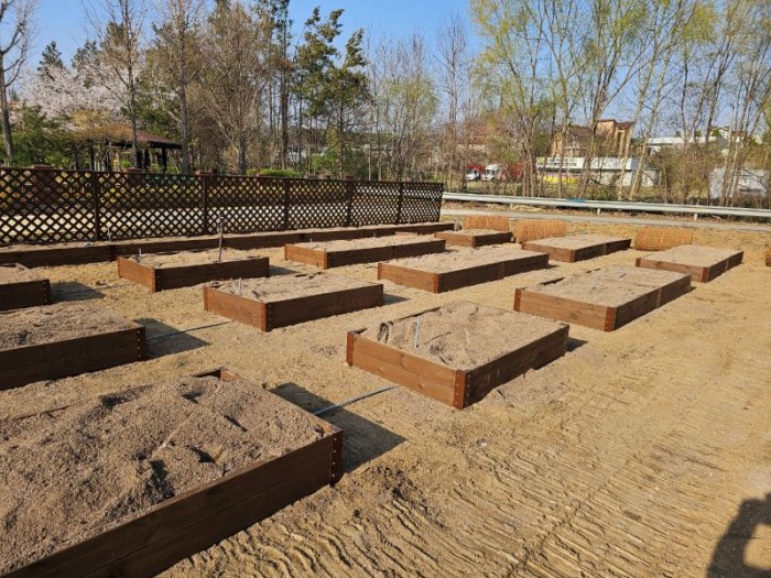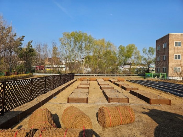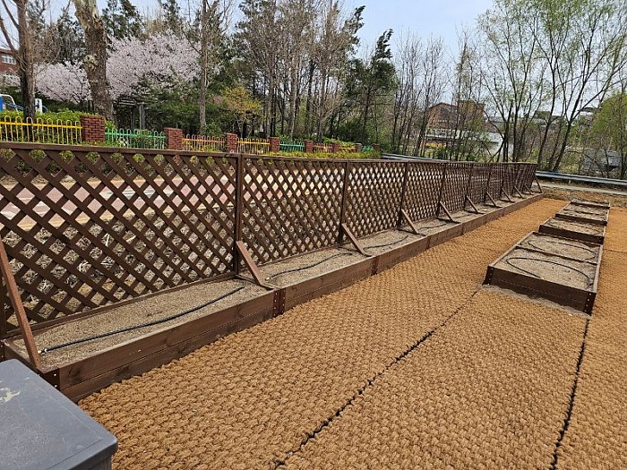 레티스텃밭상자, 텃밭상자, 야자매트로 텃밭을 조성하였습니다.