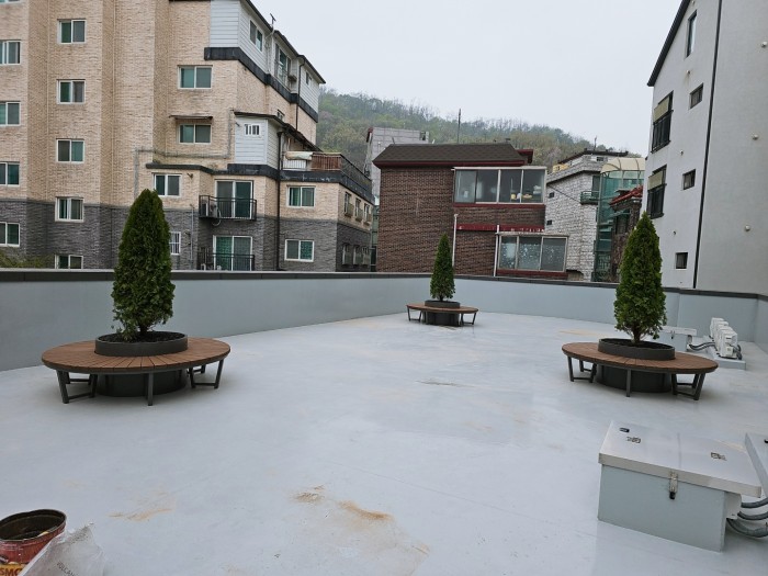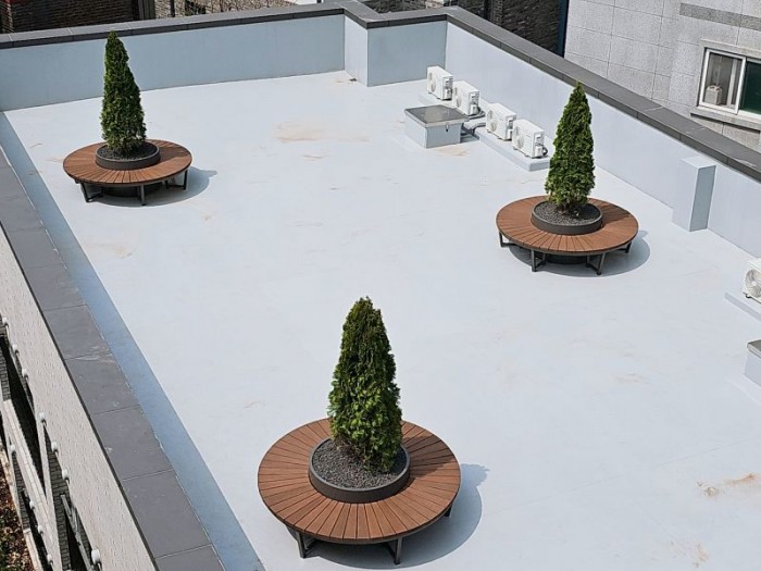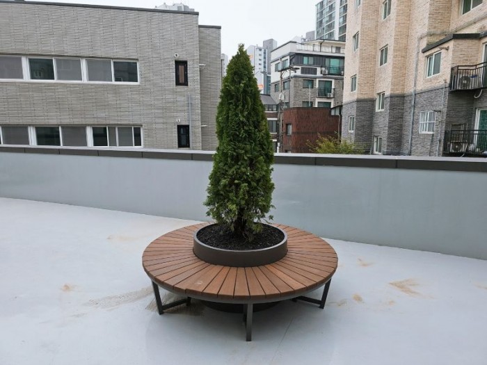 옥상조경-실외 철제 연식의자 시공사례입니다.