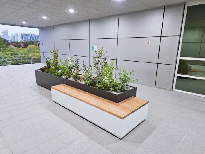 - 스텐으로 제작된 곡선플랜트, 인조대리석벤치(스텐다리)