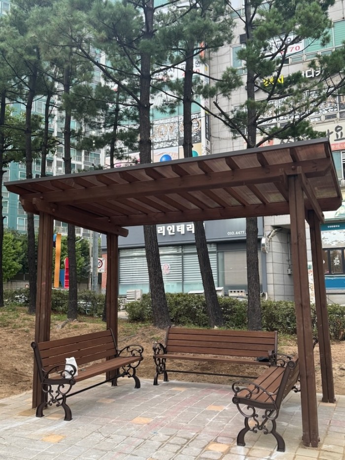옥상조경-실외 시흥에 설치된 복층렉산 목재파고라 시공사례
