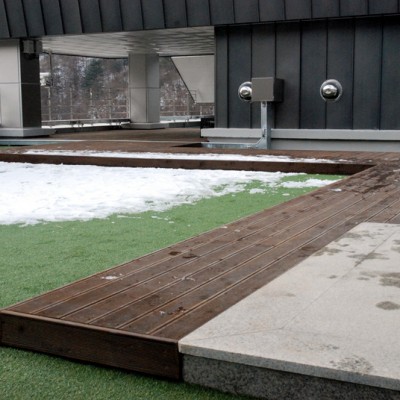 야외용 대형 테이블 설치공사입니다. 분체도장 마감된 철제프레임에 이페 목재로 디자인된 야외용 대형 테이블 입니다. 원하시는 규격,..