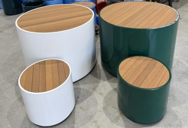 철제원형테이블 Φ1000*H750 1EA 철제원형벤치 Φ500*H430 4EA 분체도장으로 마감된 철제프레임에 하드우드목재 (30*6..