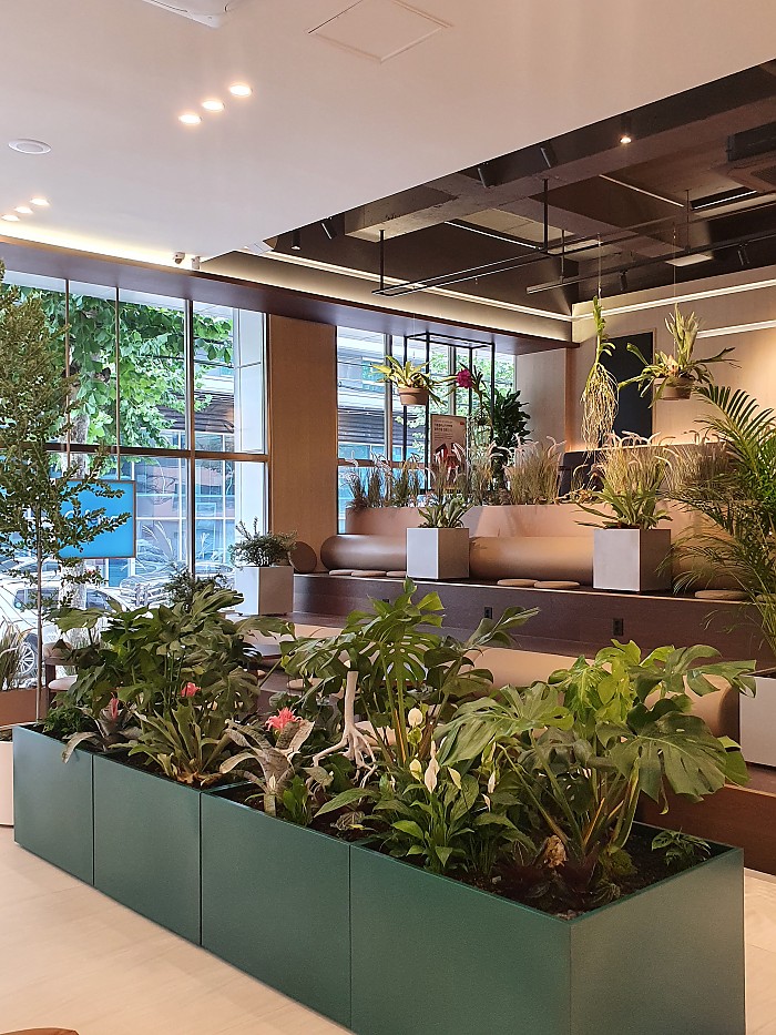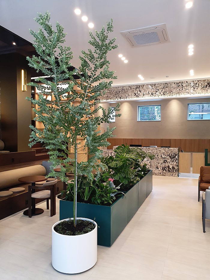 실내조경 카페 철제플랜트박스 조성공사입니다.