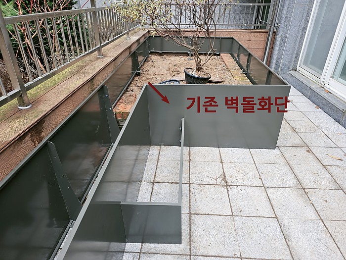 성북동 테라스에 기존에 설치된 벽돌화단을 철거하지않고 포함해
