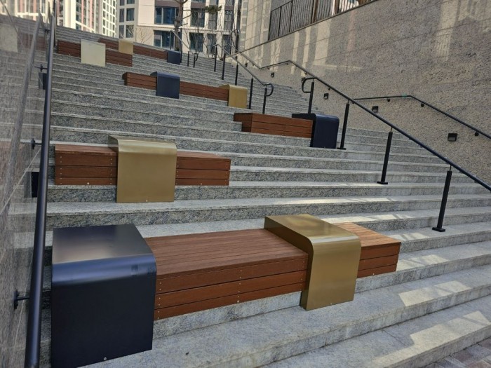 작전동에 위치한 신축아파트 계단식 철제테이블 하드우드벤치 시공사례입니다.