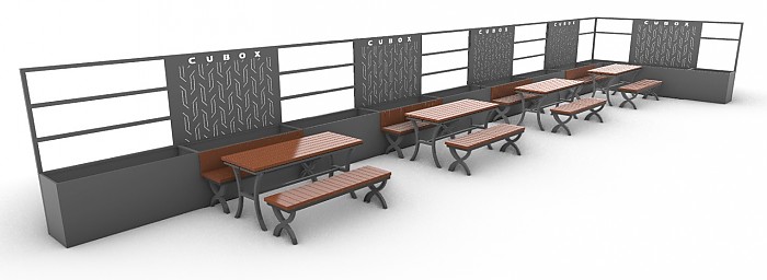 휀스형 철제플랜트박스를 이용한 실외조경 시안입니다.
