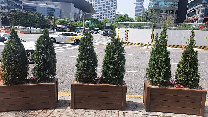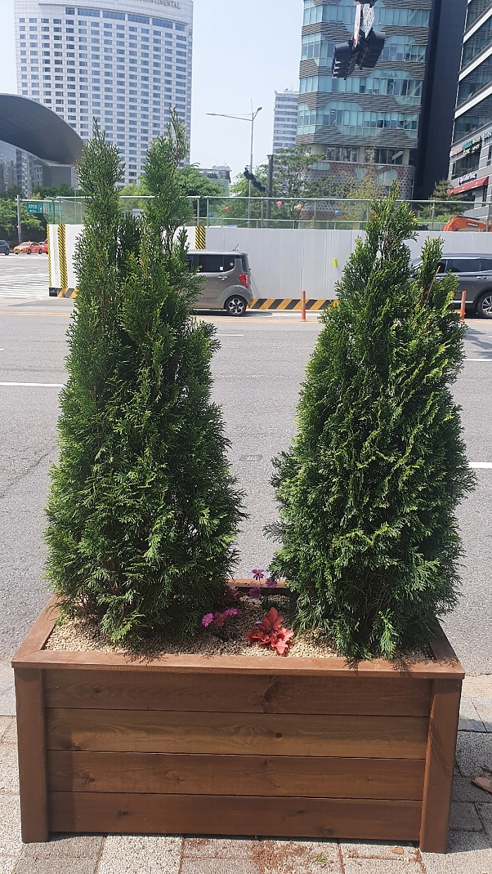 옥상조경-실외 방부목플랜트박스에 에메랄드 그린 식재
