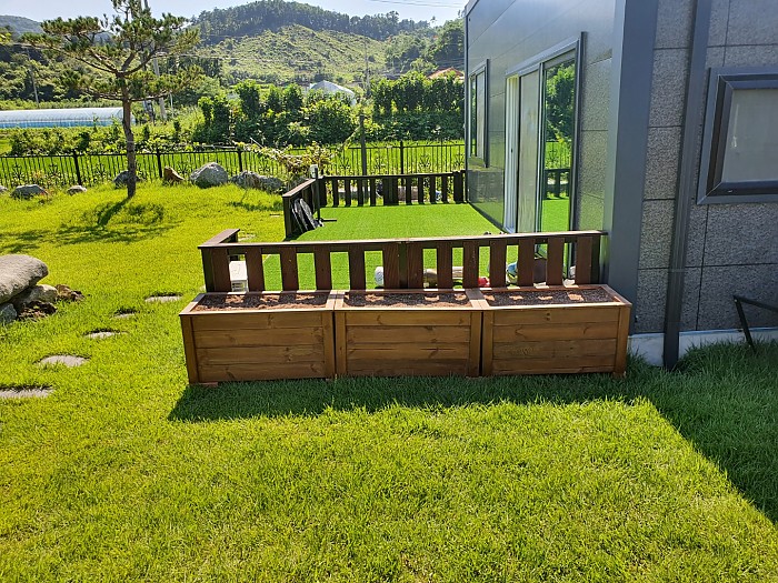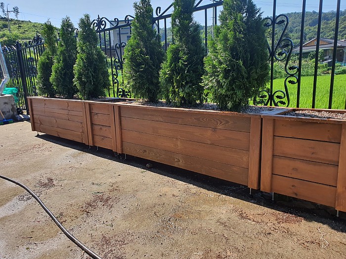 방부목 플랜트박스 에메랄드그린 식재사진입니다.