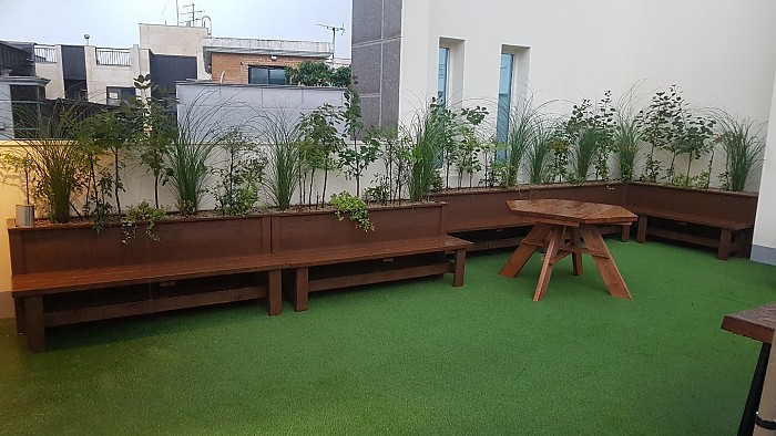 옥상조경-실외 방부목 벤치형 플랜트박스