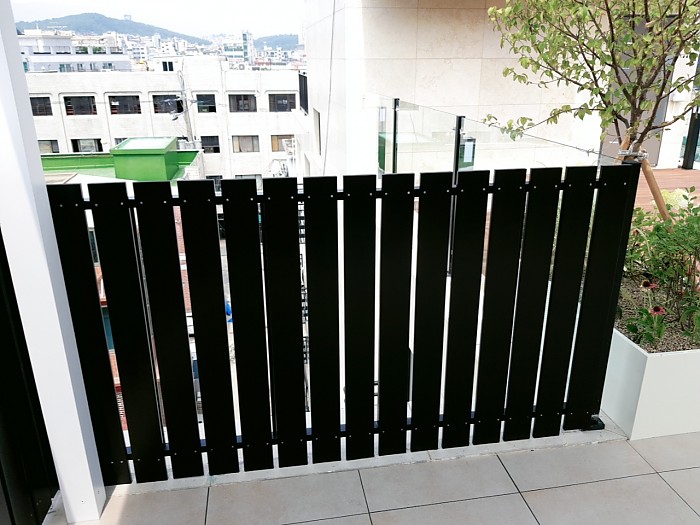 제작된 합성목으로 제작된 휀스입니다.