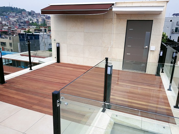직원들의 휴게공간으로 옥상에 데크시공, 합성목으로 휀스시공하였습니다.