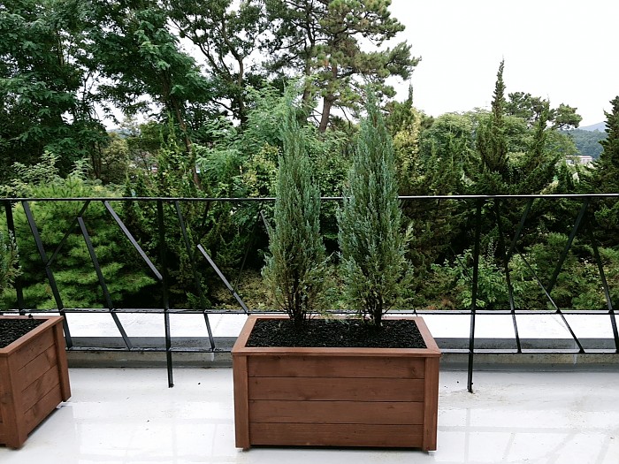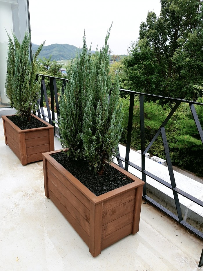 옥상조경-실외 방부목플랜트와 상록수의 조함