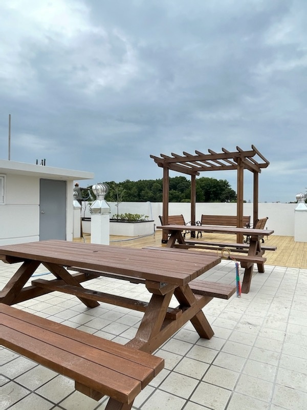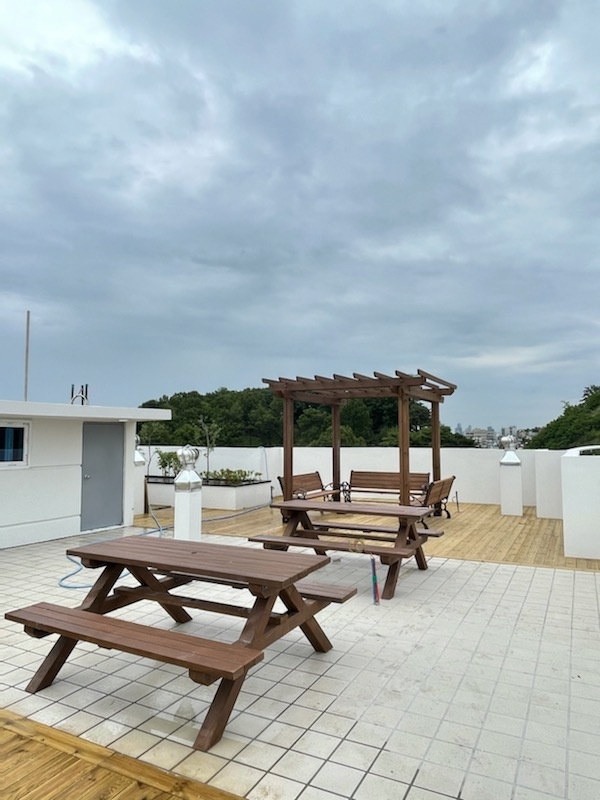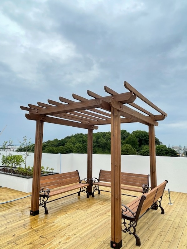 기본 파고라, 야외테이블, 등의자를 설치하여 멋진 입주민들의
