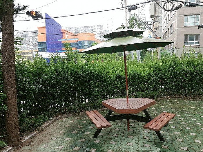 문래중학교에 설치된 연식의자, 테이블벤치입니다.