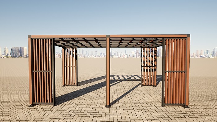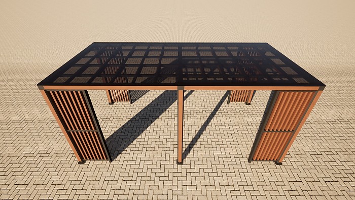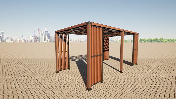사이즈와 목재가림막 위치는 변경 가능하며 지붕의 목재 디자인도 변경가능하니
