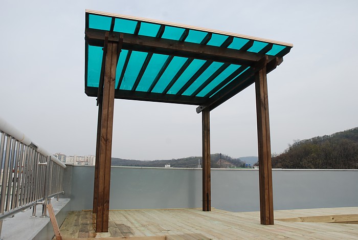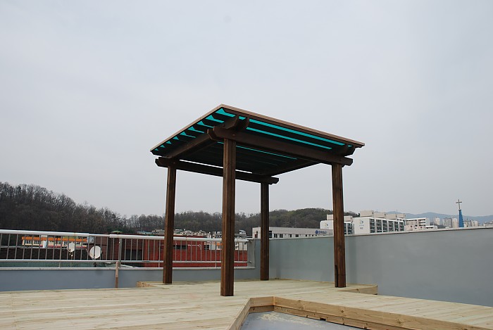 성남 옥상에 설치된 데크와 파고라 입니다.