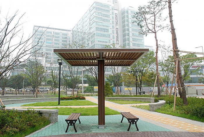 수원 이마트 신축현장에 설치된 디자인 파고라 입니다.