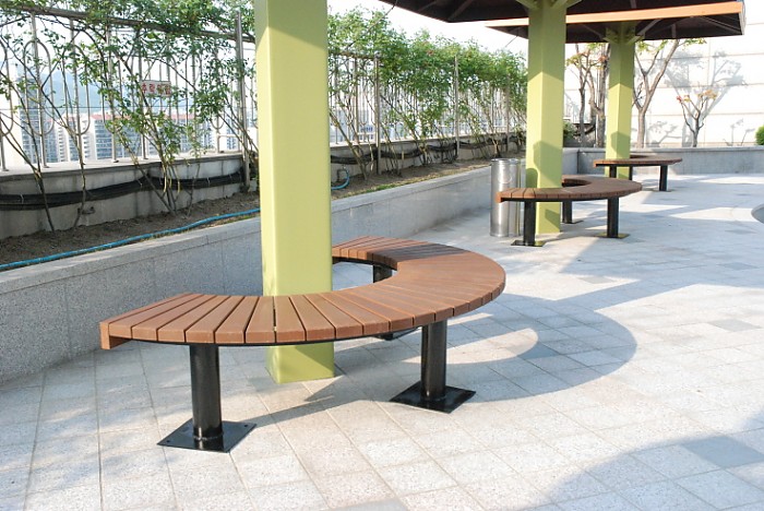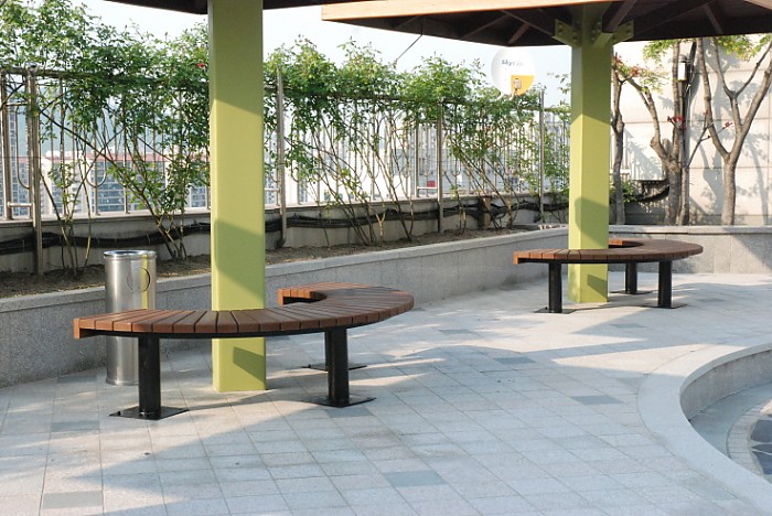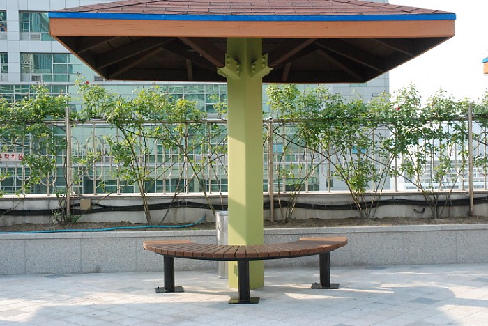 안양동에 위치한 빌딩 옥상에 설치된 디자인 파고라와 연식의자 입니다.
