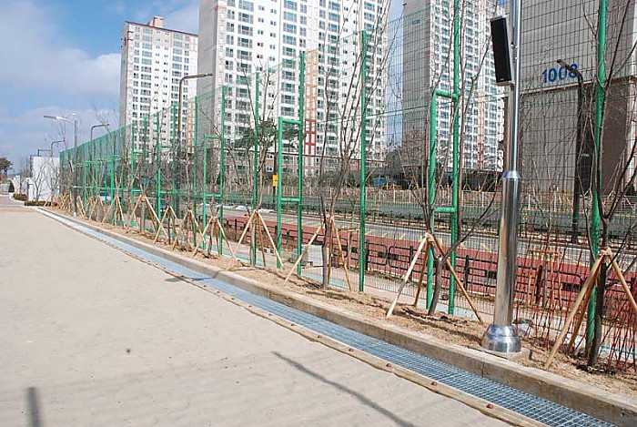 원주목-흙막이 화원초등학교 목재경계블록