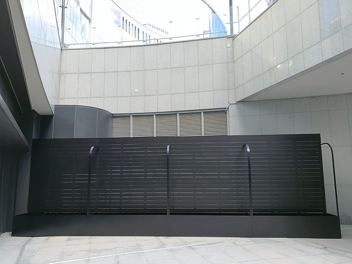 높은 담장 느낌의 휀스를 설치, 휀스 앞쪽으로 플랜트박스를 배치해