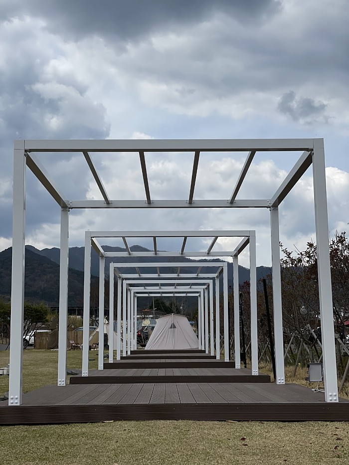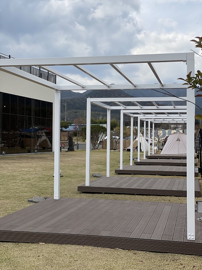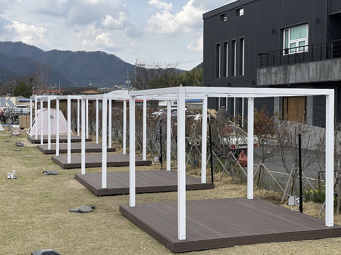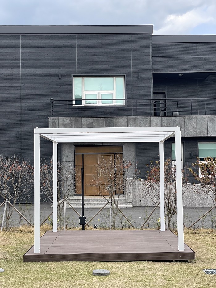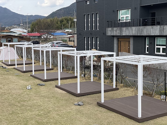 잔디위에 아늑한 공간을 만들기 위해 개별 철제파고라를 제작,