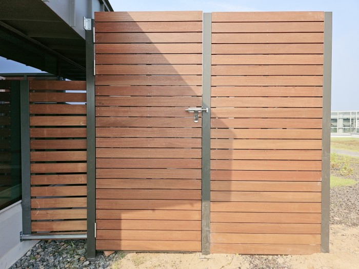 분체도장으로 마감한 철제구조물에 하드우드목재를 붙여