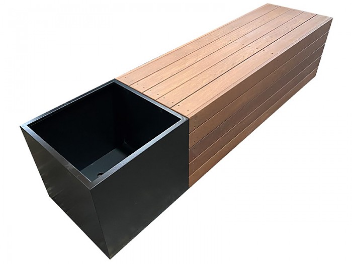 철제로 만든 사각플랜트 박스와 목재벤치의 조합으로 제작된 제품입니다.